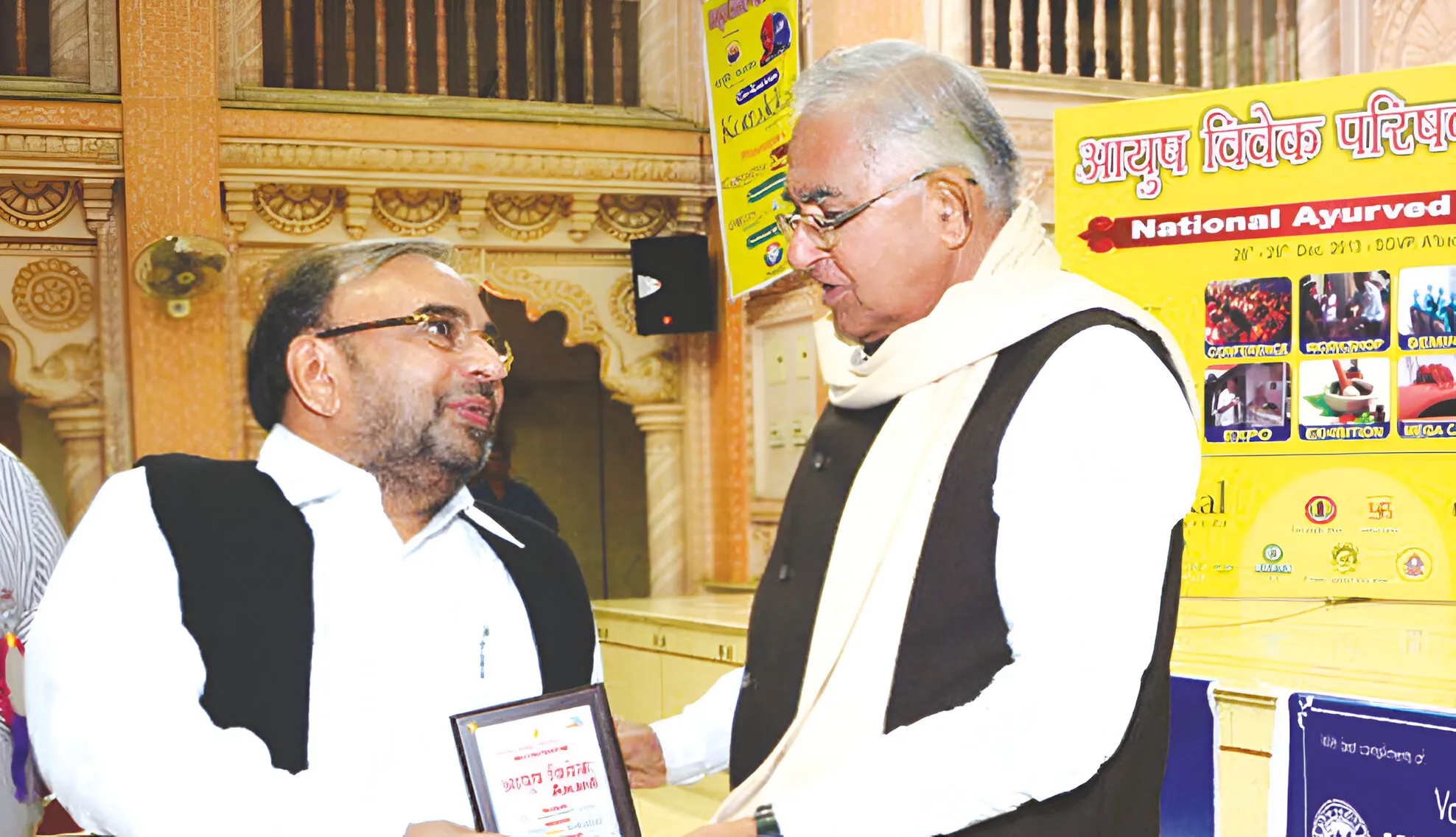 On December 29, 2013, at the National Ayurveda Event organized by AYUSH Vivek Parishad, Gujarat State’s Health and Family Welfare Minister, Shri Parbatbhai Patel, presented an award to Mr. Jashvant Shah, Chairman of “Unjha Pharmaceuticals (P) Ltd.” and “Aura Nutraceuticals”, for the “Best Quality”. The minister also appreciated the company’s modern laboratory and scientific tools for analysis, research and development in treating various incurable disease. He was very well impressed by essential publications, ‘Bharat Bhaishajya Ratnakar’ and ‘Bhaishajya-Sar-Sangrah’, for promoting knowledge of Ayurveda.